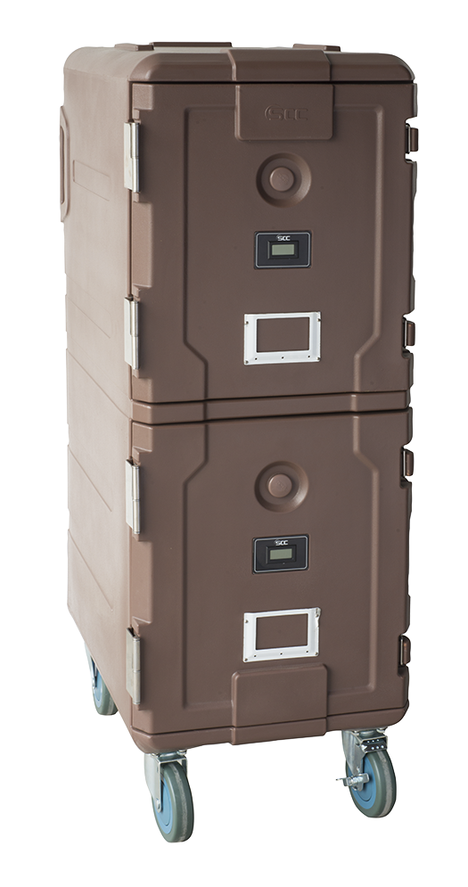 Double layered insulated food trolley on wheels with LED display (Brown). Maintain temp for 12 hours.